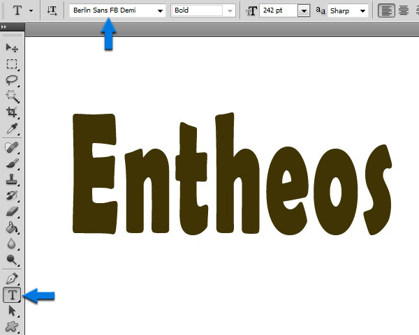 Create a new layer, select the ‘type tool’ to type the text. We’ll use ‘Berlin Sans FB Demi’ font, 242pt font size in this tutorial.