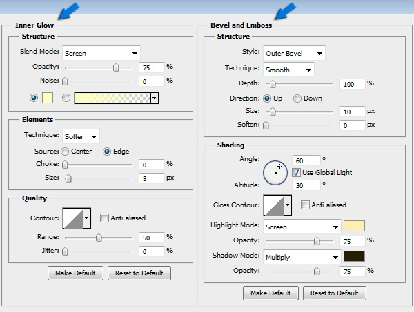 Now to give text some character, go to Layer > Layer style > Blending options and use the given settings.