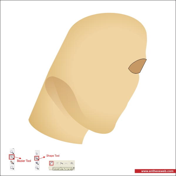 We will begin to create the texture for the Face, use ” Bezier ” and ” Shape Tool ” to create a custom shape similar like below, this will be our shadow of Jawbone.