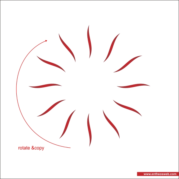 After that group both of the wavy shape by pressing ” Ctrl + G “, rotate and copy it by pressing ” Left + Right mouse + Ctrl ” while rotating it clockwise.