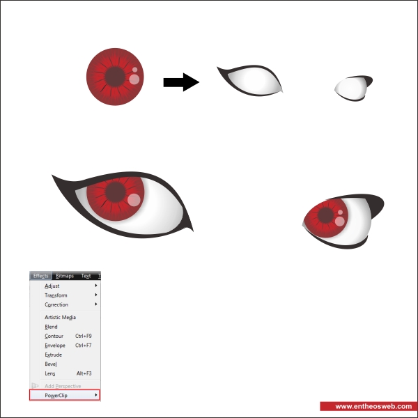 Okay now insert the pupil inside the Eye using ” PowerClip ” same as step 5.