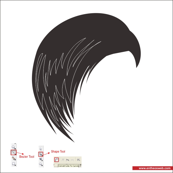 Work on the edges and create more hair strands using ” Shape Tool “, you can create a new corner by double click in it.