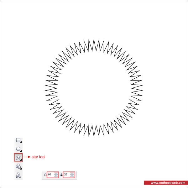 After that go to the ” Star Tool ” in the left toolbar, in the upper toolbar set the corner into “60” and the sharpness into “20”.