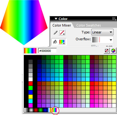 To create a radial gradient, choose the oval object and in the color mixer panel, choose Radial from the Type drop down menu and then double click on the color you want to change and change it using the color swatch or enter the color code. Repeat this for the second color. You can also add as many colors as you like for gradients, by clicking anywhere in the gradient bar and adding a color (see screenshot below). To remove a color, just drag the color of the panel.