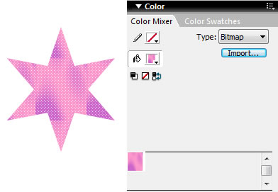 You can also create a custom image gradient and apply it to a vector object by choosing the last option in the Type drop down menu which is the Bitmap option. Choose Bitmap and import the graphic that you would like as your custom gradient. See example given below.
