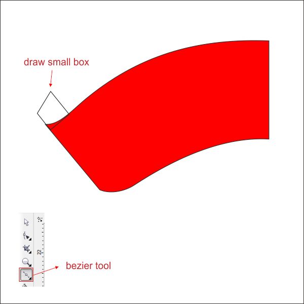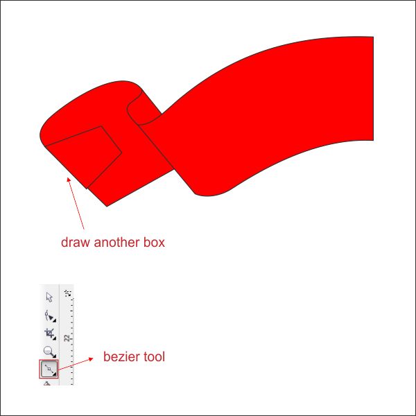 Now draw a small box in the upper left corner of the shape by using ” Bezier Tool “, like in the picture below.