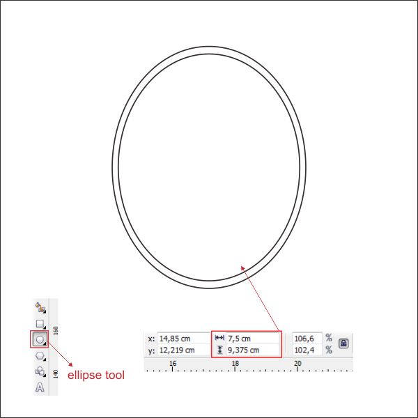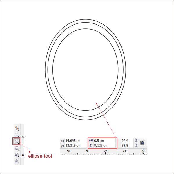 Go to the “Ellipse Tool “, you can find it on the left toolbar, make a circle shape and then make the circle shape resized into 8 x 10 cm