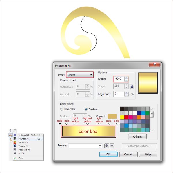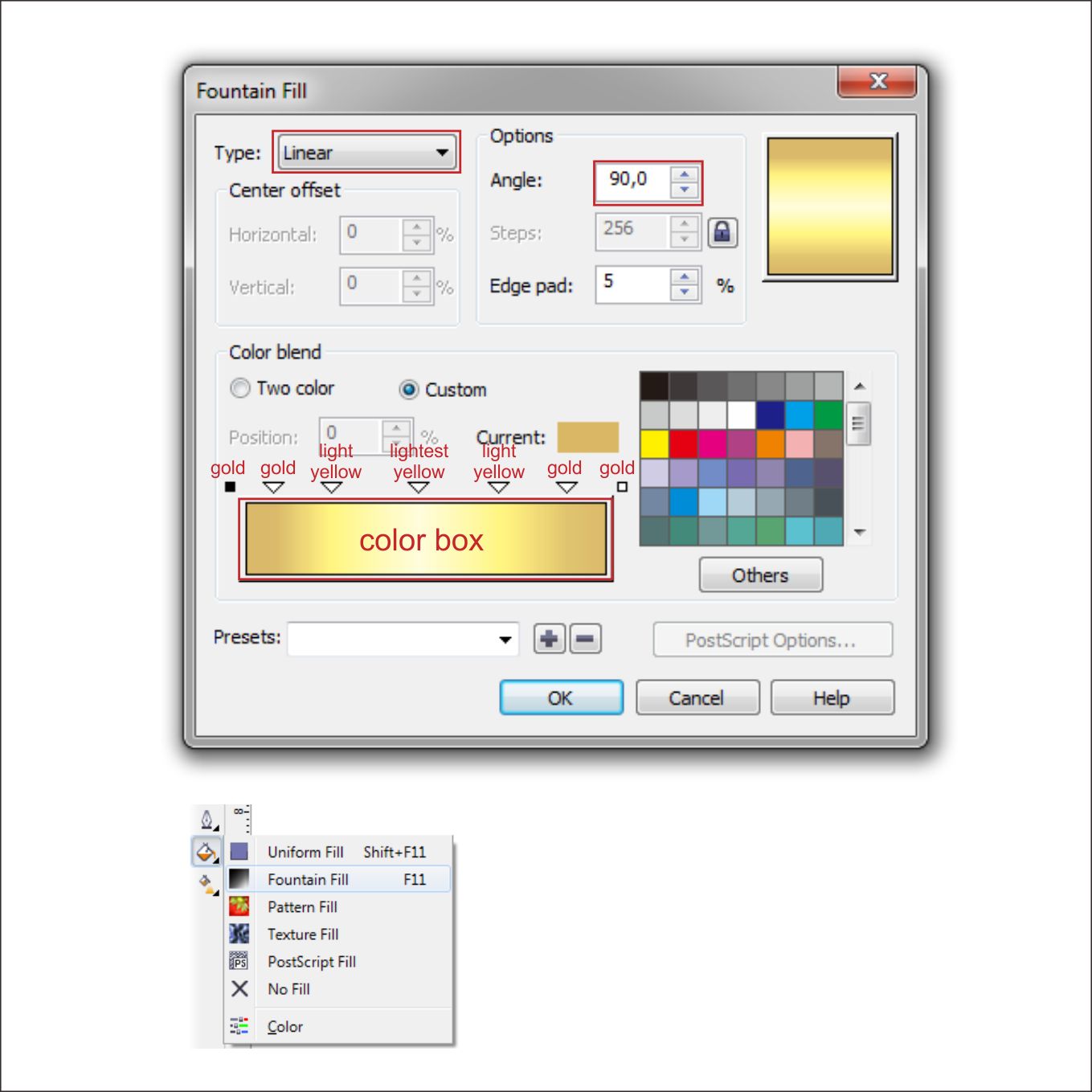Now lets put color in it, Go to the Fountain Fill Tool and set the value the same as the Golden Second Circle.