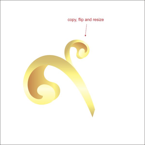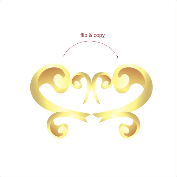 Select the little Golden Accent again, copy, flip and resize it using the same ways as above.