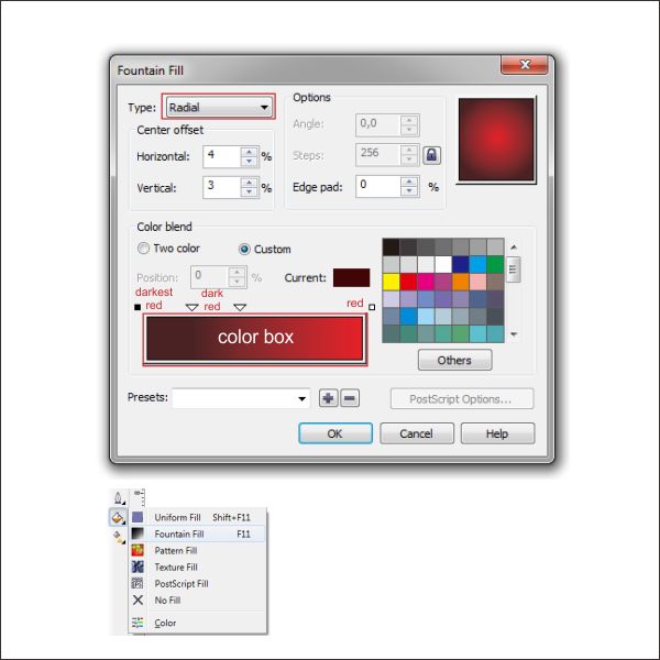 Now lets put color in the third circle, select it and go to the Fountain Fill Tool,