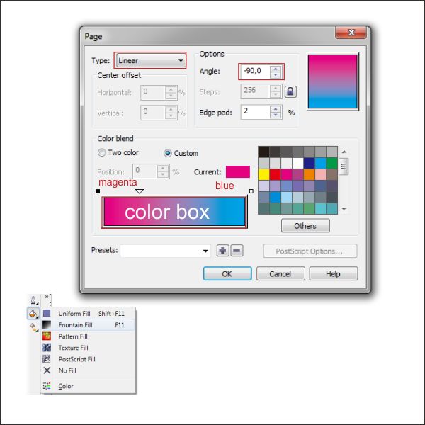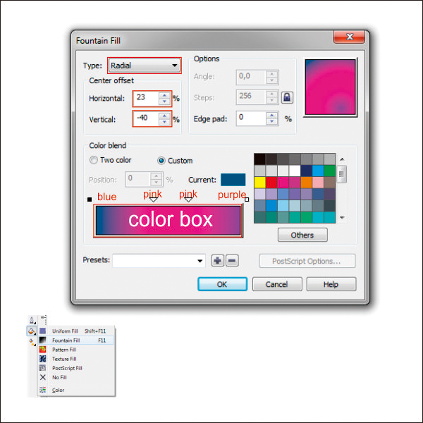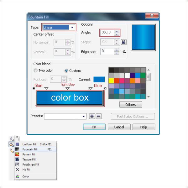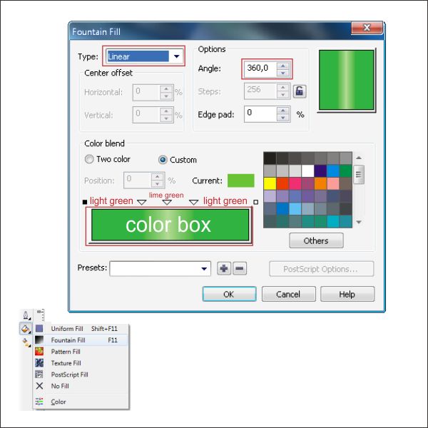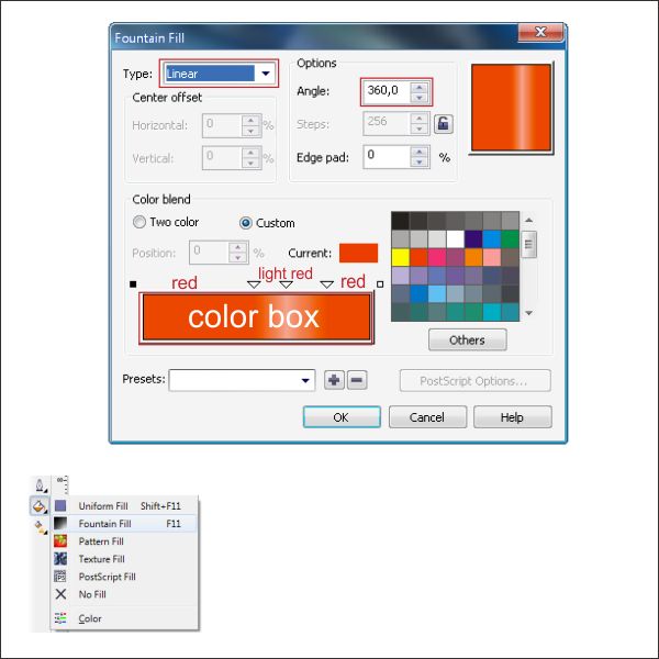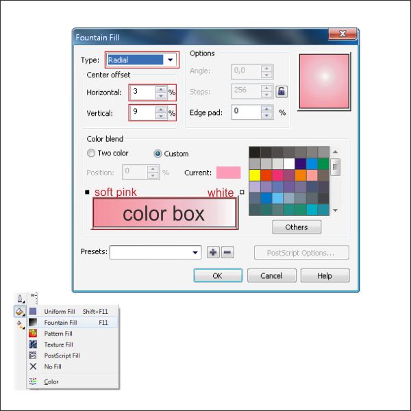 Go to the “Fountain Fill Tool” and apply the value below