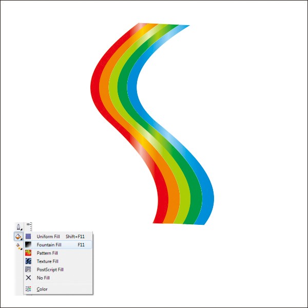Select the third Rainbow, go to the Fountain Fill Tool, and apply the value below.
