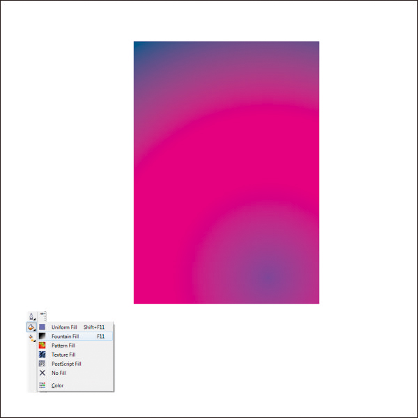 Select the Box. Go to the Fountain Fill Tool, which is in the left bottom toolbar.