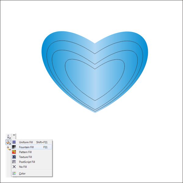 Select the First Heart and go to the Fountain Fill Tool, and apply the value below