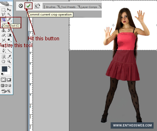 Open your model picture. You can use your own image if you can’t download this image from Photoxpress. I crop this picture to make a better effect (for this tutorial purpose). Hit C to active this tool and grab a square around the part you want to take then hit one button to complete this action.