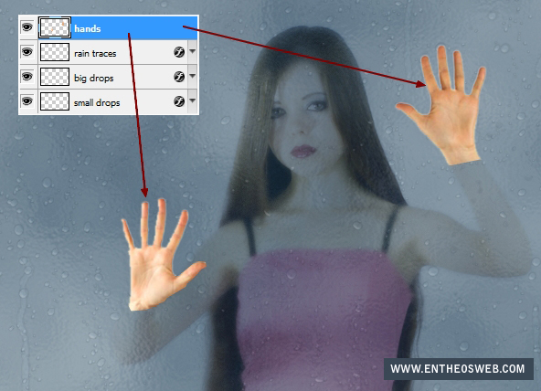 Copy them into a new layer ( right click, choose Layer via Copy like we did in step 2) and place this layer on the top. Call it “hands”: