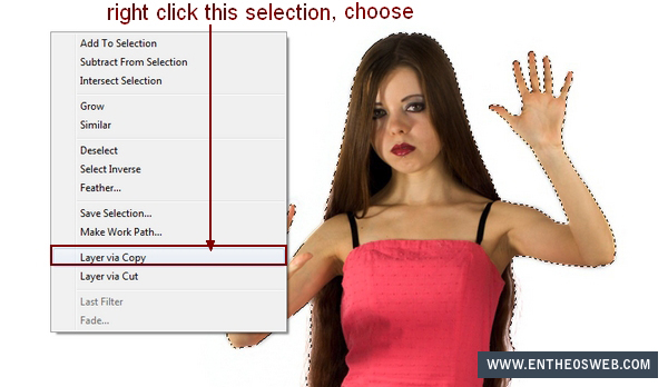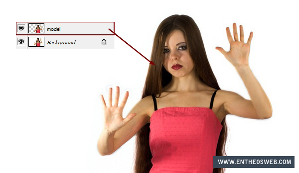 Right click this selection, choose Layer via Copy and we have a new layer with extracted model. Name this layer as “model”: