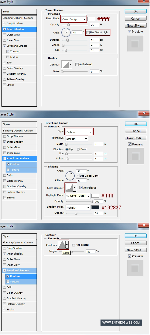 Apply same layer style done in previous step ( Drop Shadow, Inner Shadow, Bevel and Emboss) but set opacity to 20%: