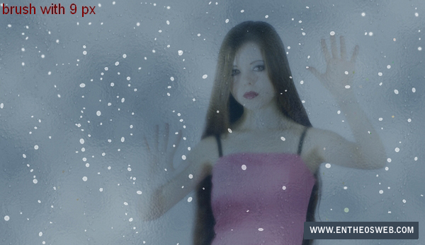 Create a new layer and use white brush with same settings but increase brush size to 9px. Paint on the pic as shown below: